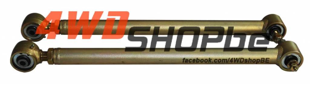 Hoe hoger je gaat, hoe meer je assen getrokken gaan staan en uit het center staan. Door deze "Heavy Duty Trailing Armen" (trekstangen) kan je je as weer perfect center zetten. Afgewerkt met de Johnny Joints zorgen deze voor een superieure flex en enorm lage stress op al je andere onderdelen.