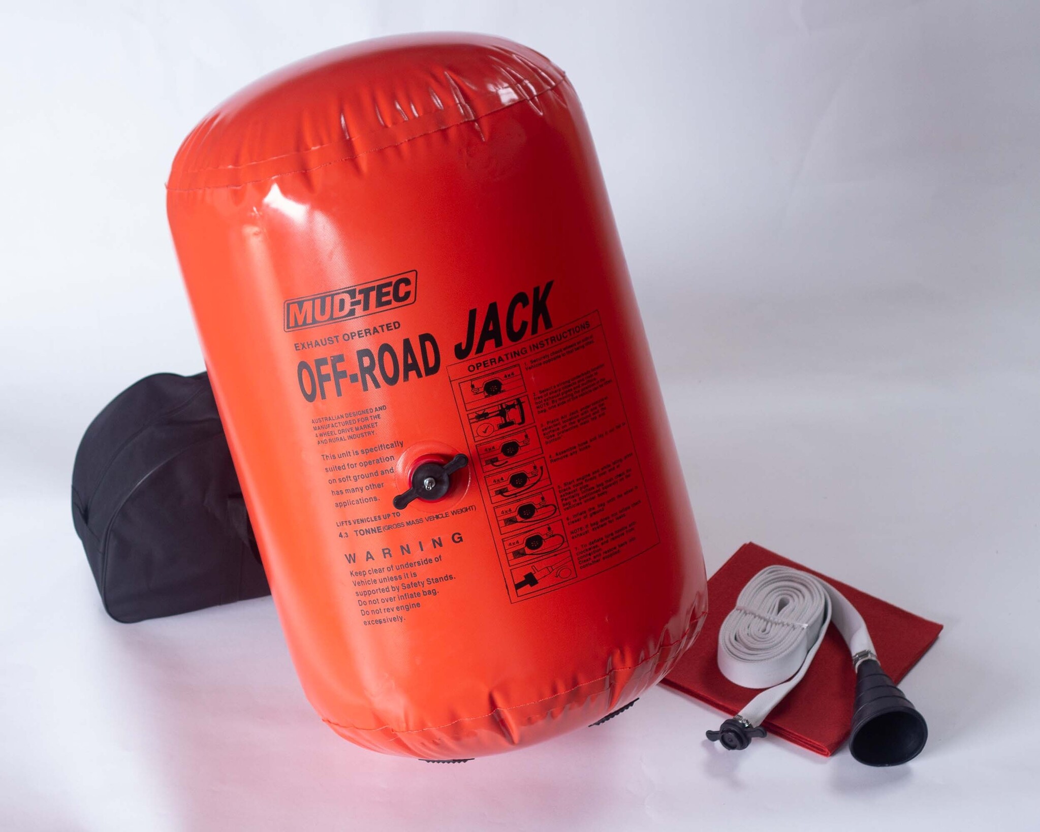 Ideaal voor zachte ondergronden. Deze MUD-TEC luchtkrik is een erg snel recovery middel dat zeer breed inzetbaar is voor zowel verticale als ook horizontale verplaatsingen. Door het grote oppervlak van de luchtzak zakt deze nauwelijks tot niet weg in zachte ondergronden. Uiteraard is de Air-Jack ook goed bruikbaar op harde ondergronden zoals de openbare weg.