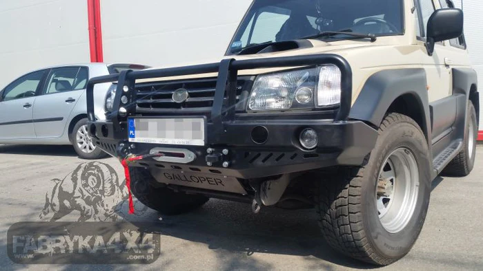 Deze voorbumper met lierplaat voor de HYUNDAI GALLOPER INNOVATION uit 1998-2003 is de perfecte combinatie van duurzaamheid, functionaliteit en stijl. Deze bumper verbetert niet alleen het uiterlijk van uw voertuig, maar verhoogt ook de offroad-capaciteiten en de veiligheid aanzienlijk. Onze voorbumper met lierplaat is de sleutel tot het ontdekken van nieuwe, spannende plekken die voorheen buiten uw bereik lagen.
